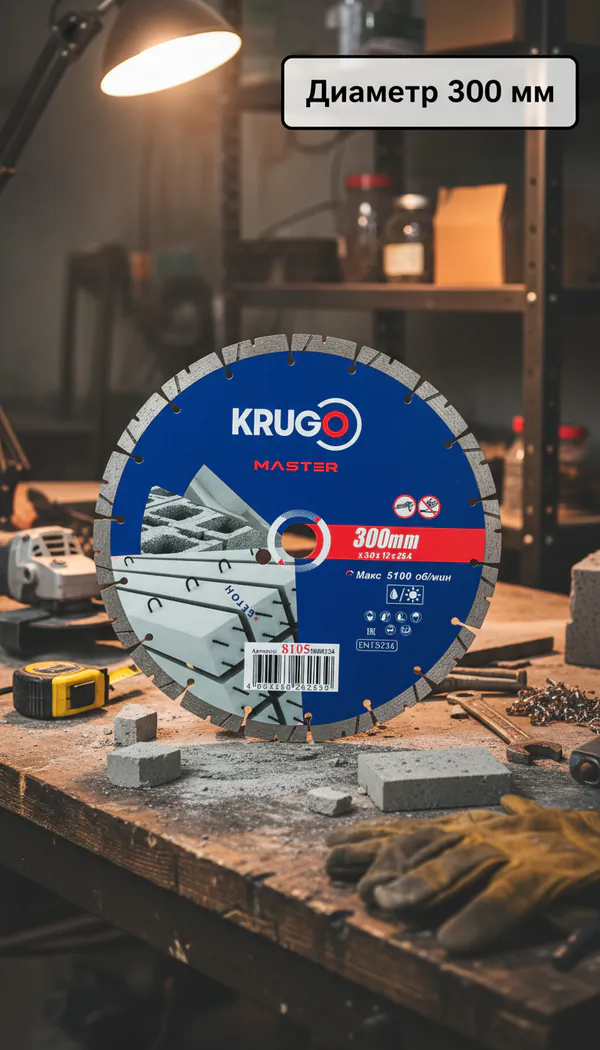 - • диск алмазный сегментный KRUGO MASTER 300*3,0*25,4*12 мм (по бетону) 81053000254.