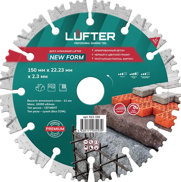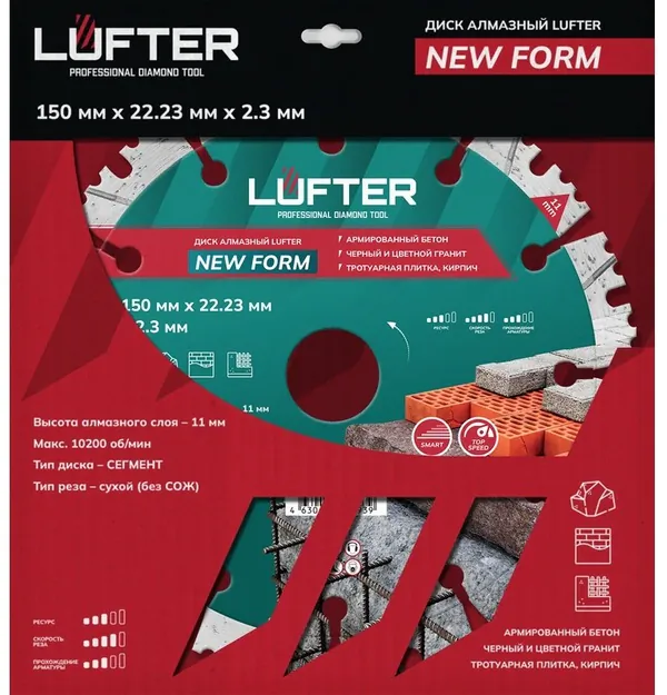Диск алмазный сегментный LUFTER NEW FORM 150*2,3*11*22,2мм гранит, кирпич, бетон, армированный бетон 012-150