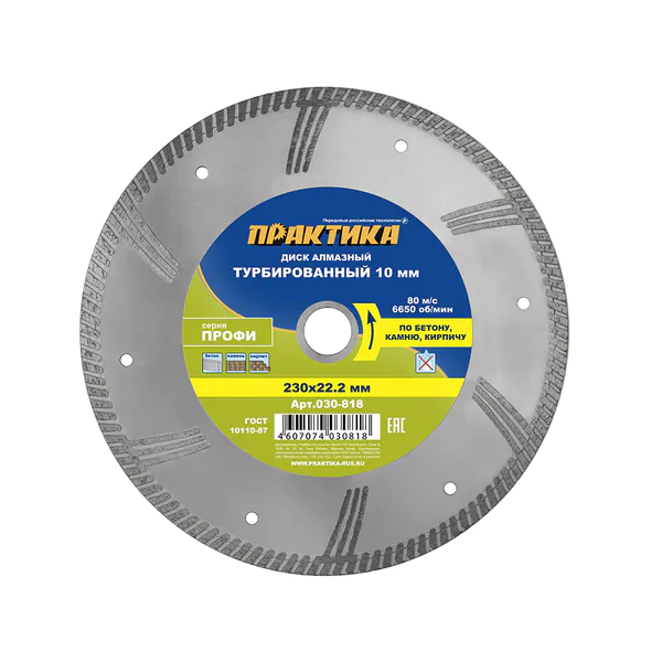 - • диск алмазный турбированный Практика "Профи" 230*22 мм сегмент 10 мм 030-818.
