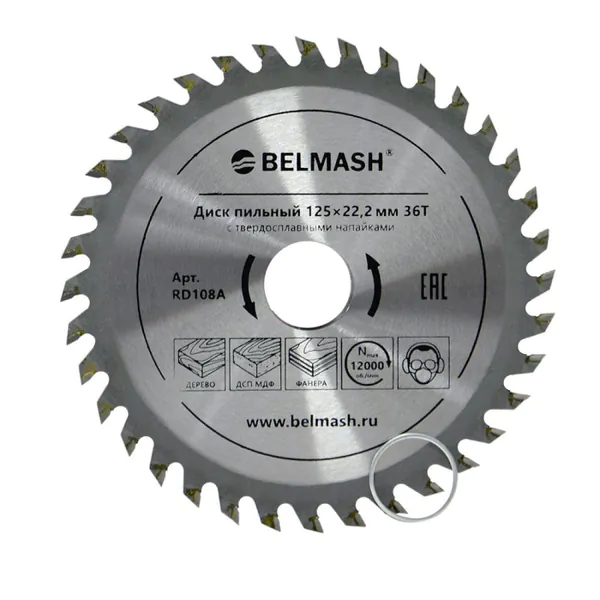 - • ДИСК ПИЛЬНЫЙ БЕЛМАШ 125*22,2/20 36Т RD108A;