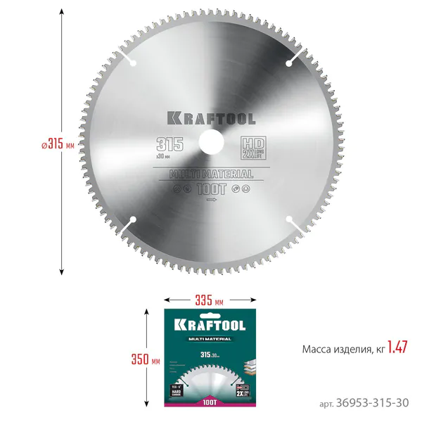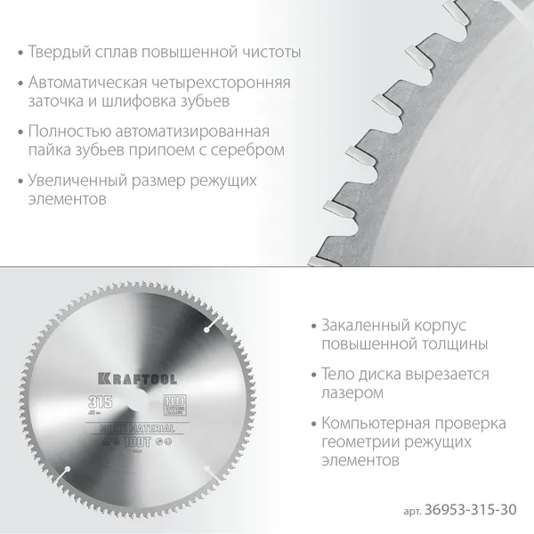 - KRAFTOOL Multi Material, 315 х 30 мм, 96Т, пильный диск по алюминию (36953-315-30)