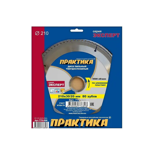 - • диск пильный Практика 210*30/20 мм 80 ЗУБОВ 776-898 1 шт.,