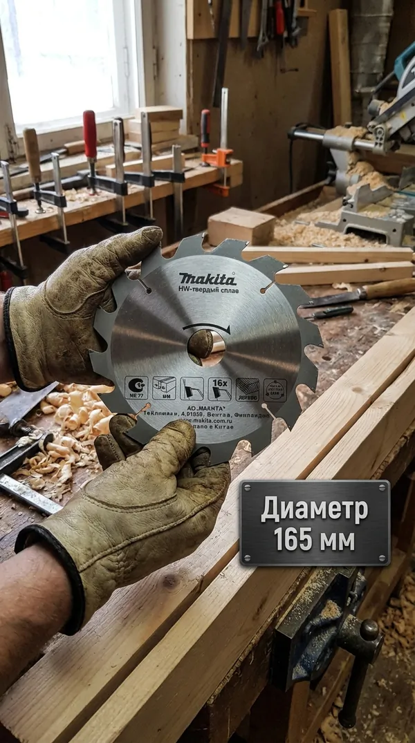 - • диск пильный по дереву Makita 165*20/15.88*1.8/1.2*16T D-81050.