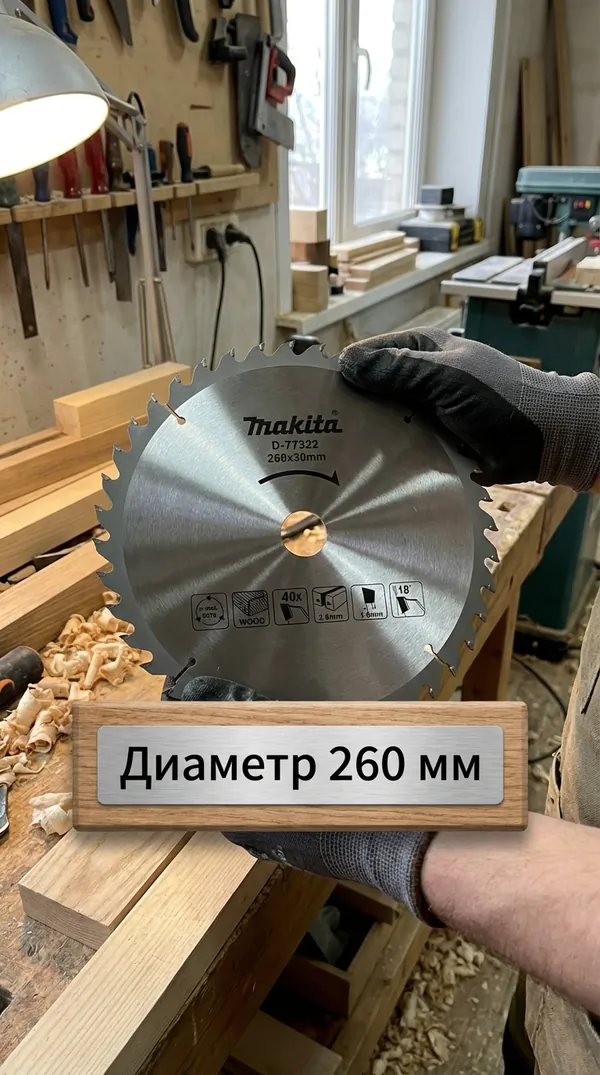 - • диск пильный по дереву Makita 260*30*2.6/1.8*40T D-77322.