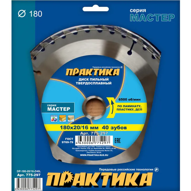 Диск пильный по ламинату Практика 180*20/16*40T 775-297