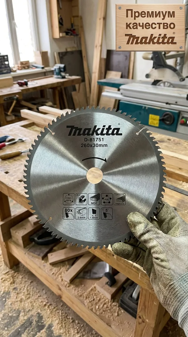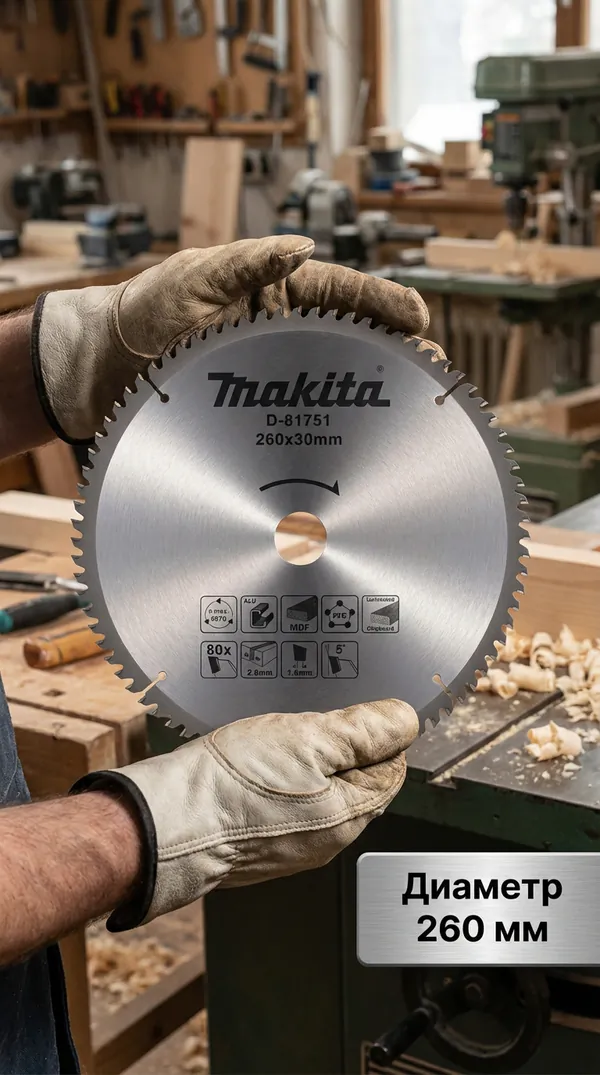 - • диск пильный универсальный Makita 260*30*2.6/1.8*80T (для алюминия/дерева/пластика) D-81751.