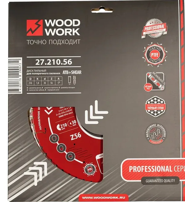 Диск пильный Woodwork Профессионал 210*1,8/1,2*30 Z=56 A=-5 10° ATB 8° 27.210.56