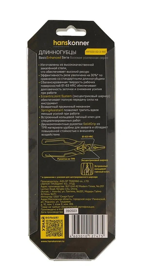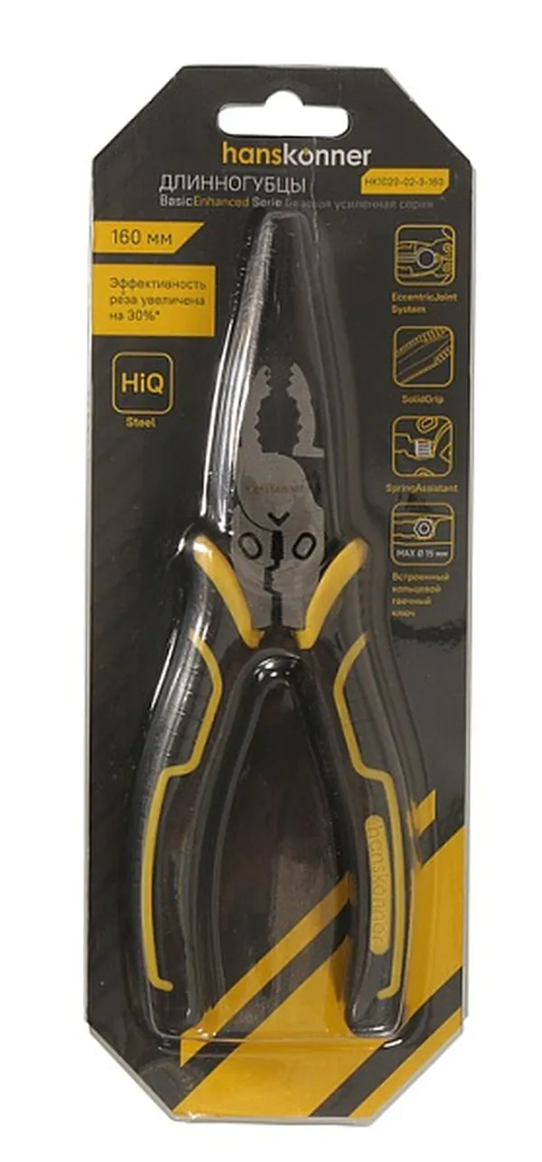 - • длинногубцы Hanskonner 160 мм, эксц. шарнир,+30% к силе реза, TPR рукоятки , HK1020-02-3-160.