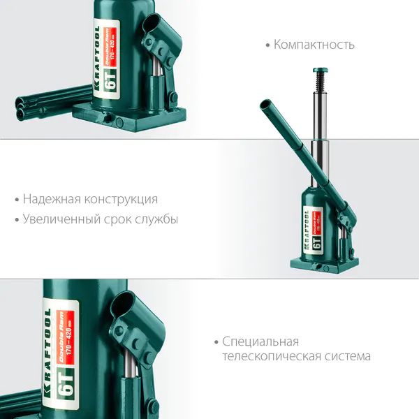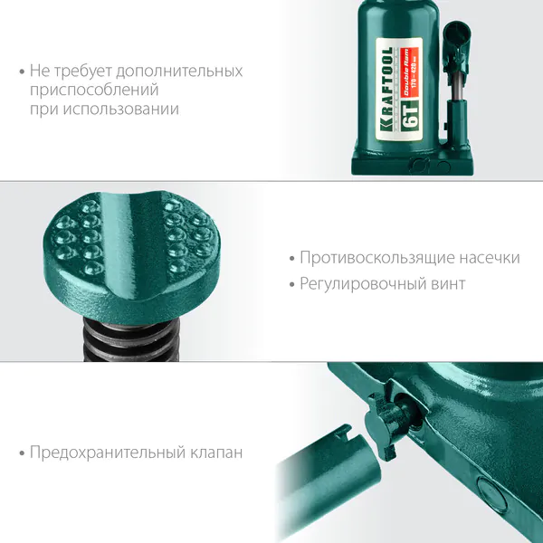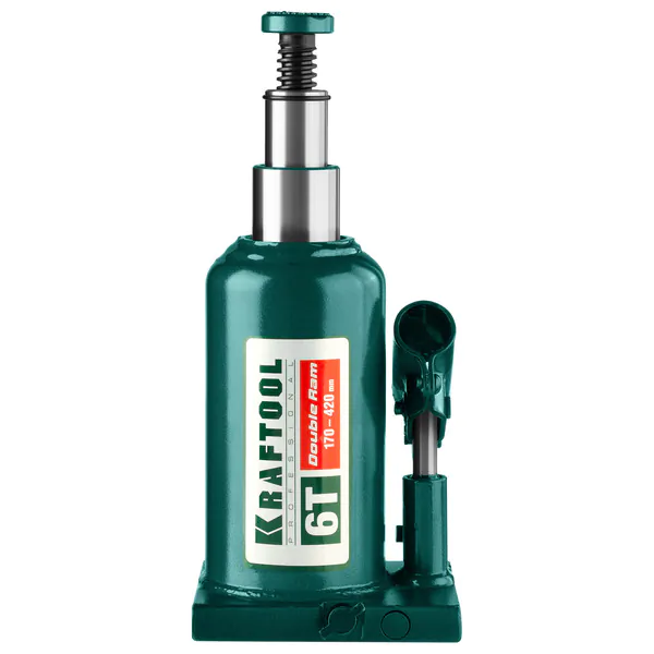 - KRAFTOOL DOUBLE RAM, 6 т, 170 - 420 мм, с увеличенным подъемом, двухштоковый бутылочный домкрат (43463-6)