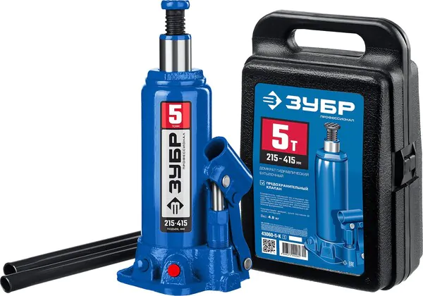 - ЗУБР 5 т, 216 - 413 мм, бутылочный гидравлический домкрат в кейсе, Профессионал (43060-5-K) 43060-5-K_z01