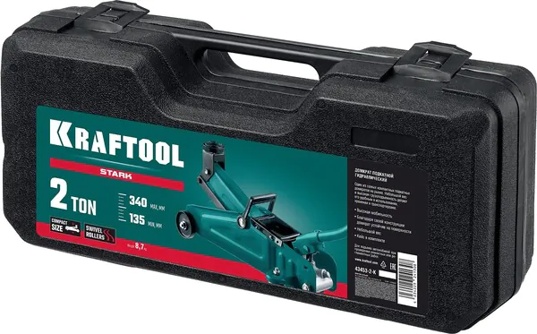 - KRAFTOOL STARK, в кейсе 2 т, 135 - 340 мм, для легковых а/м, подкатной домкрат (43453-2-K)