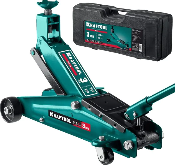- KRAFTOOL SUV, в кейсе 3 т, 190 - 530 мм, подкатной домкрат с высоким подъемом (43458-3-K)