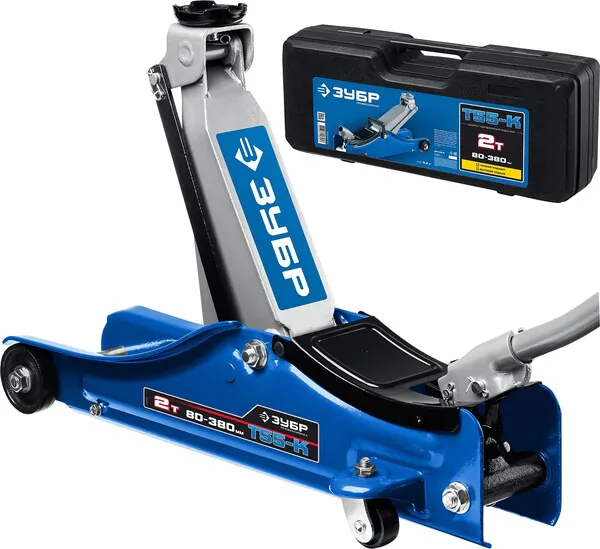 - ЗУБР Т-55-K, 2 т, 80 - 380 мм, подкатной домкрат с увеличенным подъемом и низким подхватом в кейсе, Профессионал (43058-2-K)