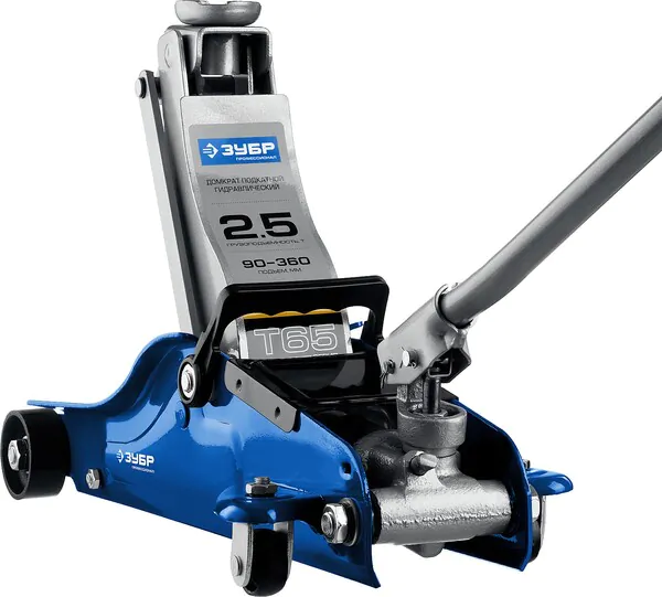 Домкрат подкатной Зубр Профессионал Т-65, 2.5т, 90-360мм с низким подхватом и поворотной ручкой 43057-2.5-K