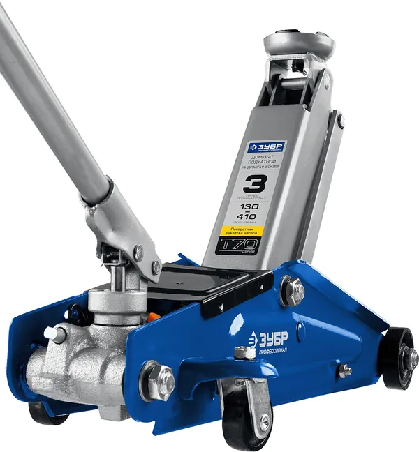 - ЗУБР Т-70, 3 т, 130 - 410 мм, подкатной домкрат с поворотной ручкой, Профессионал (43052-3) 43052-3_z01