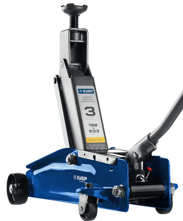 - ЗУБР Т-77, 3 т, 192 - 533 мм, подкатной домкрат с высоким подъемом, Профессионал (43055-3)
