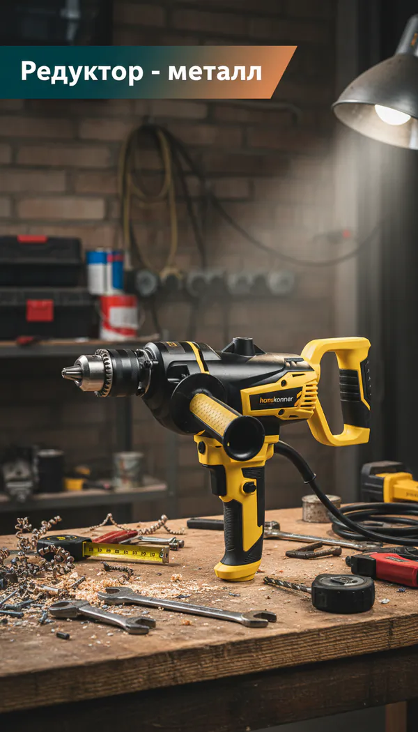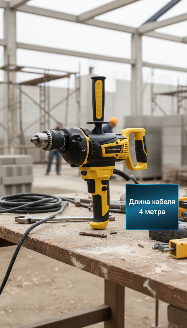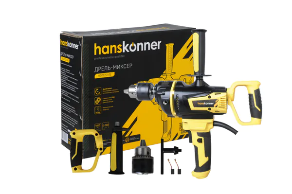 Дрель-миксер Hanskonner PLATINUM, 1400Вт, 0-1100об/мин, патрон 16мм, метал редуктор, 4м кабельHDM2014E
