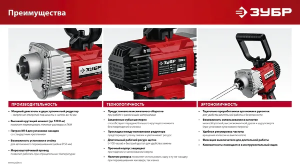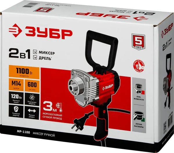 - ЗУБР 1100 Вт, М14, дрель-миксер (МР-1100)