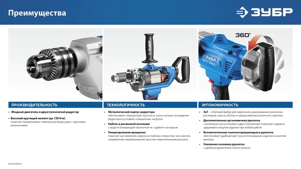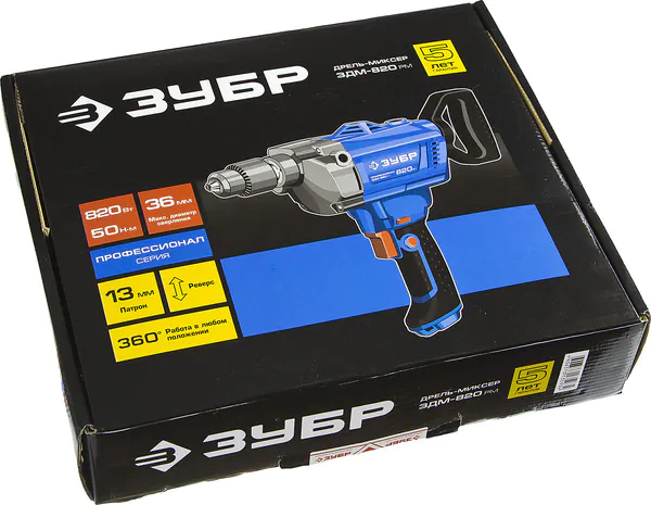 - ЗУБР 820 Вт, 13 мм, дрель-миксер, Профессионал (ЗДМ-820 РМ)