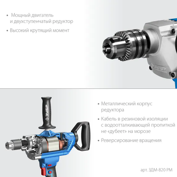 Дрель-миксер ЗУБР Профессионал 820 Вт, 13 мм, ЗДМ-820 РМ