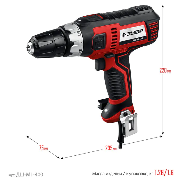 - ЗУБР 400 Вт, 28 Н·м, сетевая дрель-шуруповерт (ДШ-М1-400)