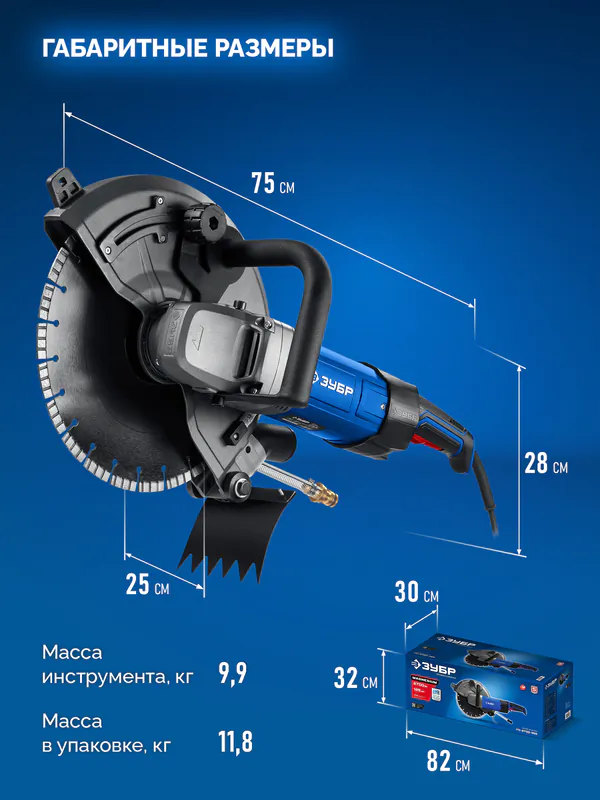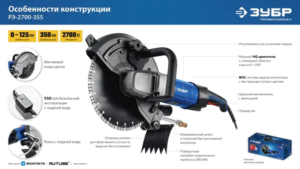 - ЗУБР d 355 мм, 2700 Вт, 125 мм, электрический резчик по бетону, Профессионал (РЭУ-2700-355) РЭ-2700-355