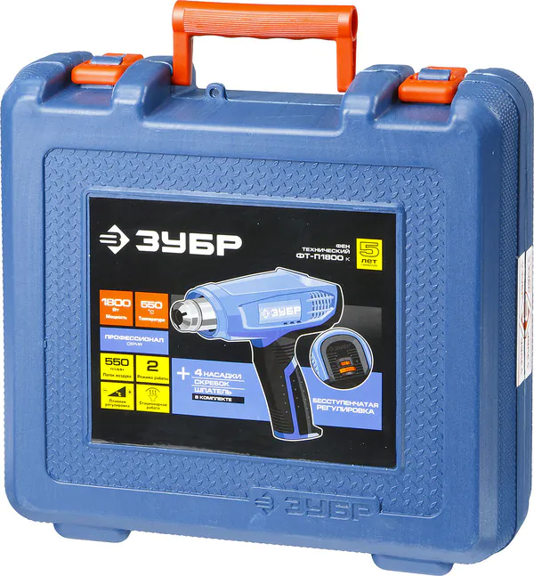 Фен технический ЗУБР Профессионал 1800Вт, кейс ФТ-П1800 К