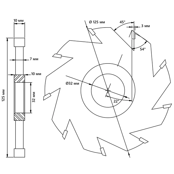 - Фреза пазовая BELMASH с подрезающими зубьями 125х32х10 мм RF0020T