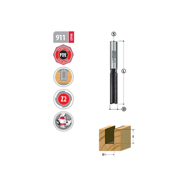 - • фреза пазовая Woodwork D=6 mm I=1 9mm S=6 mm 911.0619.06.