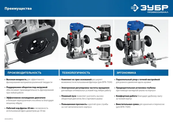 - ЗУБР 750 Вт, кромочный фрезер, Профессионал (ФПК-750)