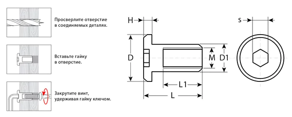- ЗУБР M6 x 12 мм, шест. 5 мм, цинк, 5 кг, гайка Эриксона с плоской головкой, Профессионал (303770-5)