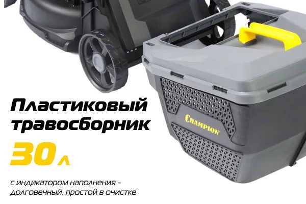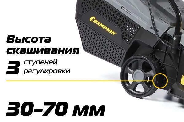Max мощность, Вт1200Ширина скашивания, смВысота скашивания, см7Min высота скашивания, см3Max площадь газона, м²1000ТравосборникОбъем травосборника, л30МульчированиеМощность двигателя, кВт1.2Тип травосборникаТип двигателяРодина брендаРоссияСтрана изготовительКитайПроизводительChampionСамоходнаяНетМодельEM3212/1Большие задние колесаНетКласс товараГарантия, мес36Условия гарантииПри регистрации на сайте производителяУстановленный срок службы, лет10Привод на ножВыброс травыРегулировка высотыКоличество режимов регулировки высотыМатериал корпусаПриводВыбор скоростиНетФункция поворотаНетТип ручкиИндикация заполненияДаСтепень защиты от пыли и влагиУровень шума, дБ96Габариты товара (ДхШхВ), мм1070*370*930Масса нетто, кг7.1Габариты упаковки (ДхШхВ), мм570*300*390Вес брутто, кг8.4Комплектация