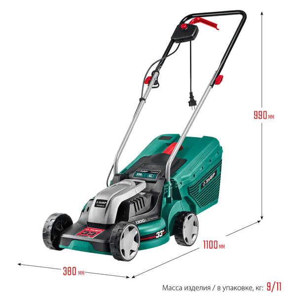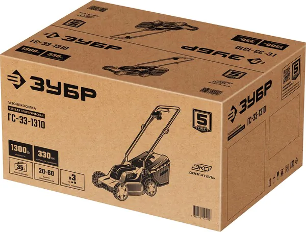 - ЗУБР 1300 Вт, ш/с 33 см, сетевая газонокосилка (ГС-33-1310)