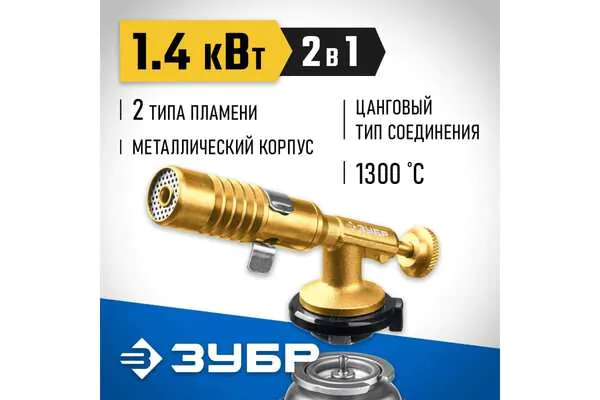 - • газовая горелка Зубр ГРМ-200 2-в-1 цельнометалл 55556.