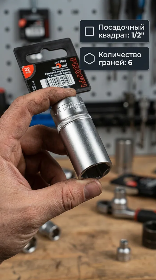 - • головка глубокая Сервис Ключ ( 6 граней) 22 мм 77822.