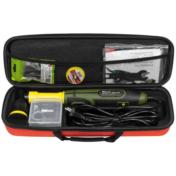 Max мощность, Вт65Частота вращения шпинделя, об/мин2500-5000Размер цанги, ммГибкий вал в комплектеНетДлина кабеля, м2.9Автоматически отключающиеся при износе щеткиНетЭлектронная регулировка оборотовДаПлавный пускНетНасадки в комплектеДаЛегкий доступ к щеткамНетМодель1152Тип двигателяПоддержание постоянных оборотов под нагрузкойНетНапряжение питания, ВКласс товараКомплектациячемодан/кейсГарантия, мес12Условия гарантииНа данный вид товаровПроизводительDLTРодина брендаБеларусьСтрана изготовительКитайГабариты товара (ДхШхВ), мм340*60*100Масса нетто, кг1.06Габариты упаковки (ДхШхВ), мм420*80*170Вес брутто, кг1.75Комплектация