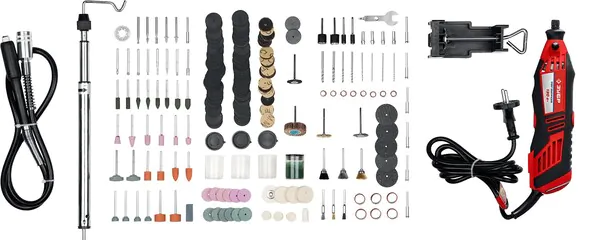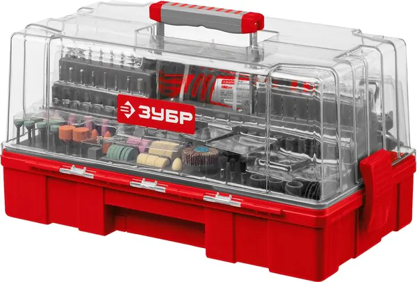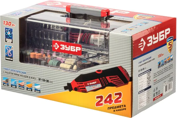 - ЗУБР 242 предмета, 130 Вт, набор мини-насадок с гравером (ЗГ-130ЭК H242)