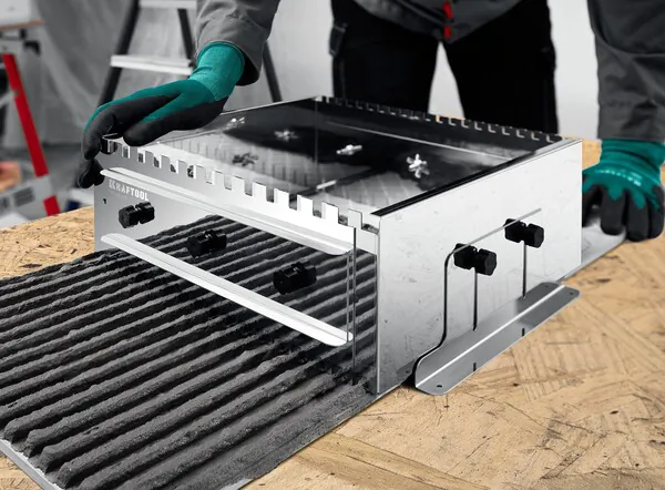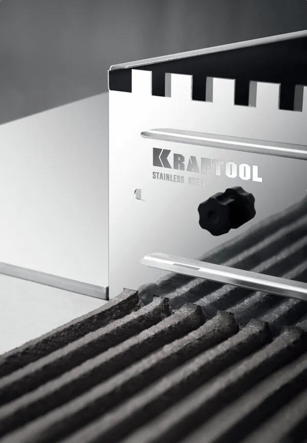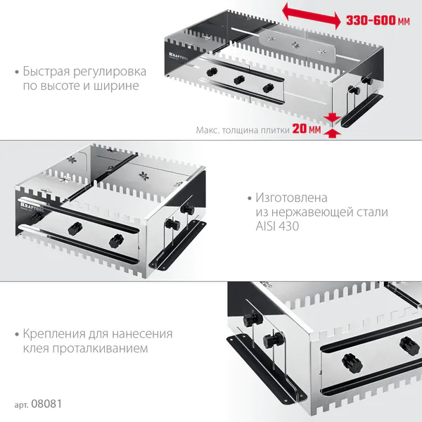 - KRAFTOOL BUNKER-4 зуб 8, 10, 12 мм, полукруг 10х20 мм, нерж. сталь, Раздвижная гребенка для плитки (08081)