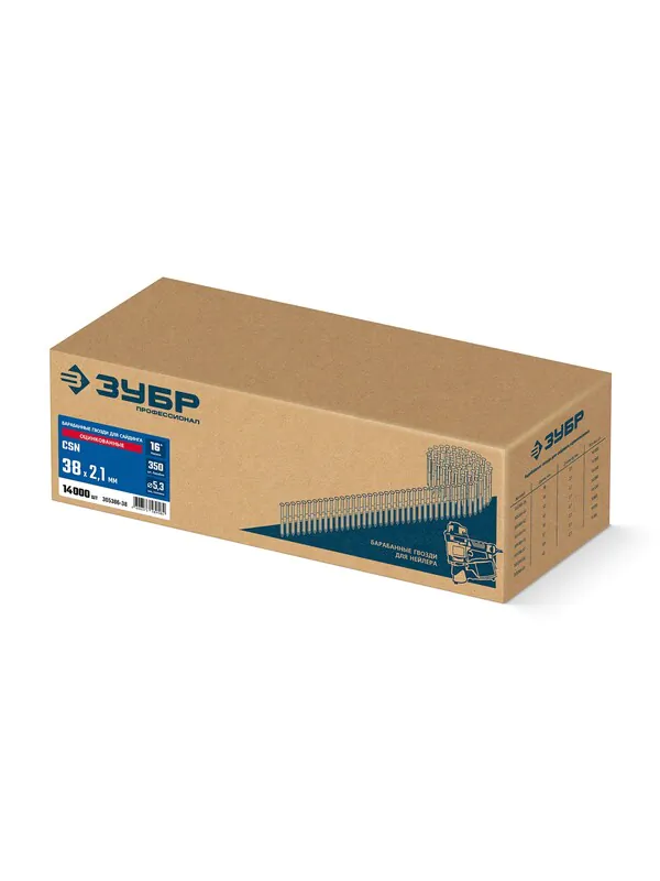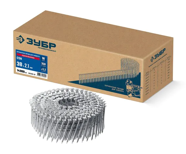 - ЗУБР CSN 38 х 2.1 мм, барабанные гвозди для сайдинга оцинкованные, 14000 шт (305386-38)