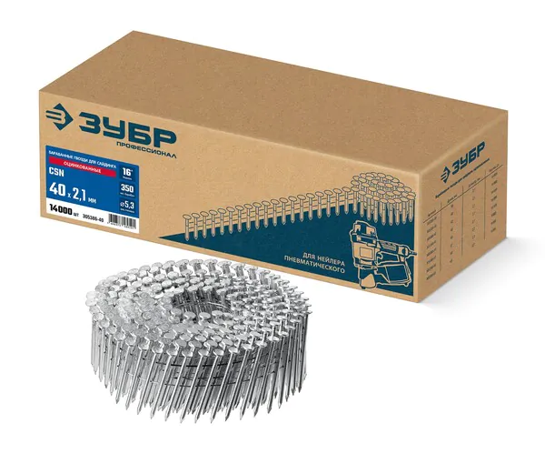 - ЗУБР CSN 40 х 2.1 мм, барабанные гвозди для сайдинга оцинкованные, 14000 шт (305386-40)