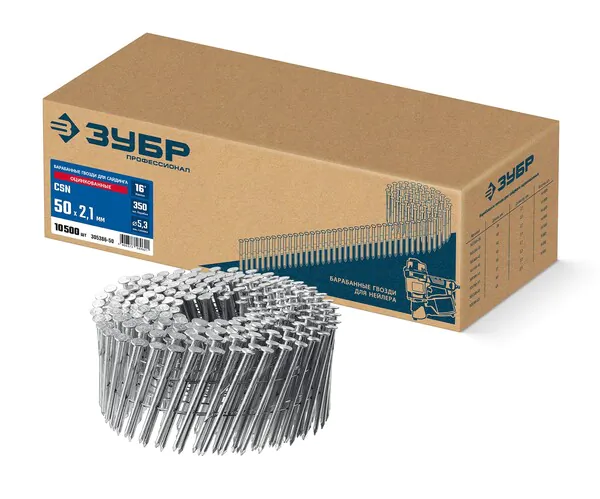 - ЗУБР CSN 50 х 2.1 мм, барабанные гвозди для сайдинга оцинкованные, 10500 шт (305386-50)
