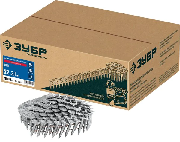 - ЗУБР CRN 22 х 3.1 мм, барабанные гвозди кровельные оцинкованные, 9000 шт (305385-22)