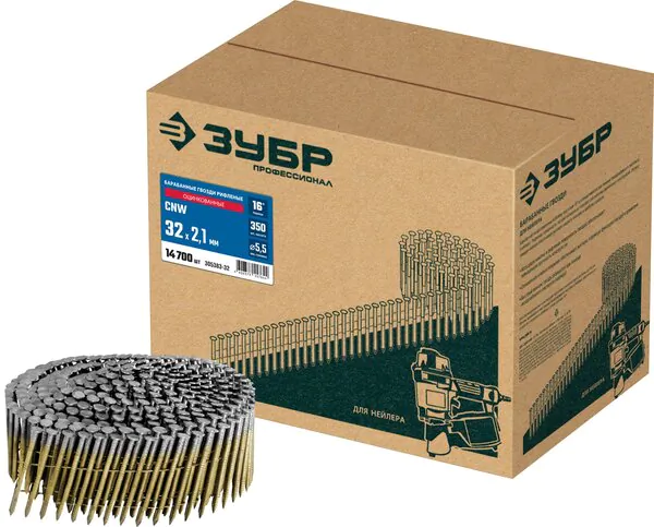 - ЗУБР CNW 32 х 2.1 мм, барабанные гвозди рифленые оцинкованные, 14700 шт (305383-32)