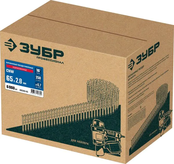 - ЗУБР CNW 65 х 2.8 мм, барабанные гвозди рифленые оцинкованные, 6000 шт (305383-65)