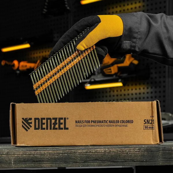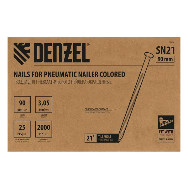 - • гвозди Denzel для пневматического нейлера (крашен.) SN21 90 мм 3,05 мм 2000 шт 57700.