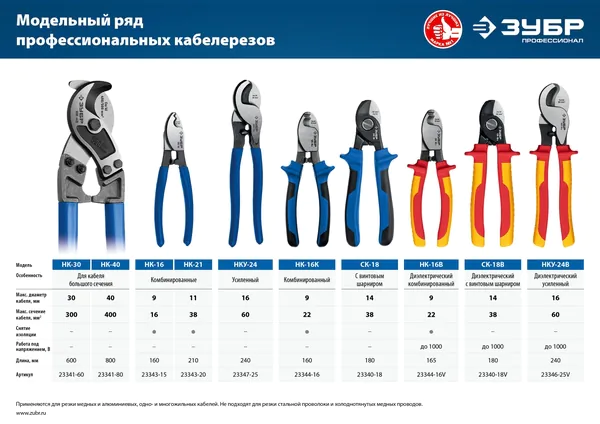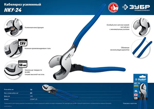 Кабелерез ЗУБР Профессионал усиленный НКУ-24, d16мм, 240мм 23347-25