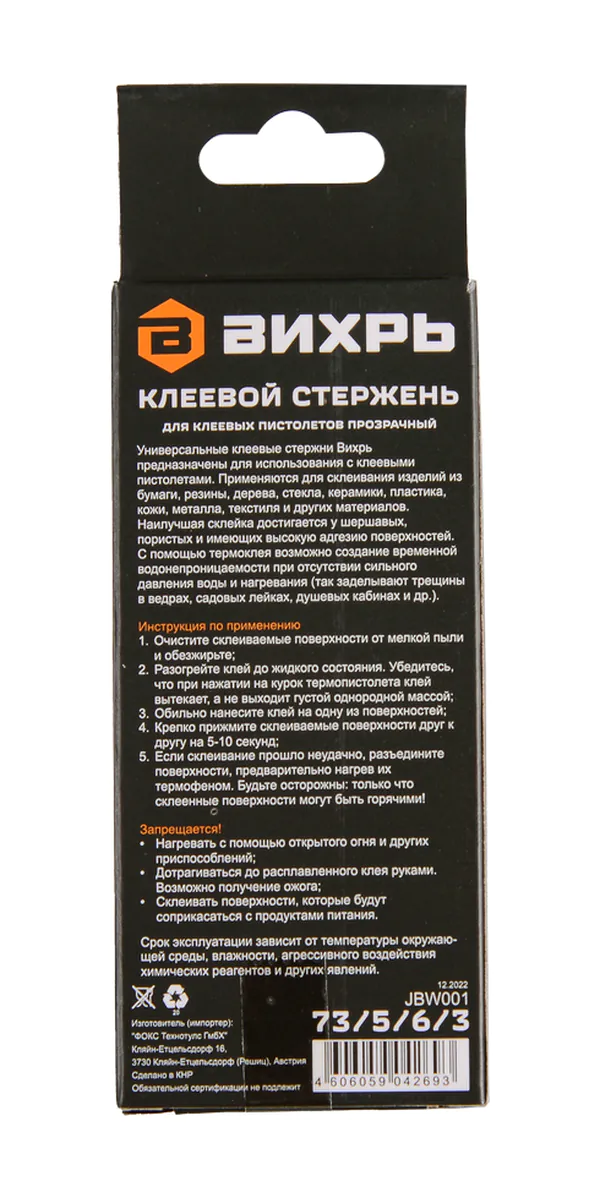 Клеевой стержень Вихрь 7*100мм 12шт 73/5/6/3