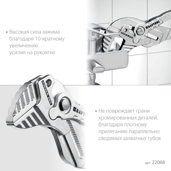 - KRAFTOOL Vise-Wrench, 300 мм, клещи переставные-гаечный ключ (22068)