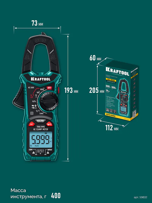 - KRAFTOOL KC-300 Цифровые токовые клещи (59832)