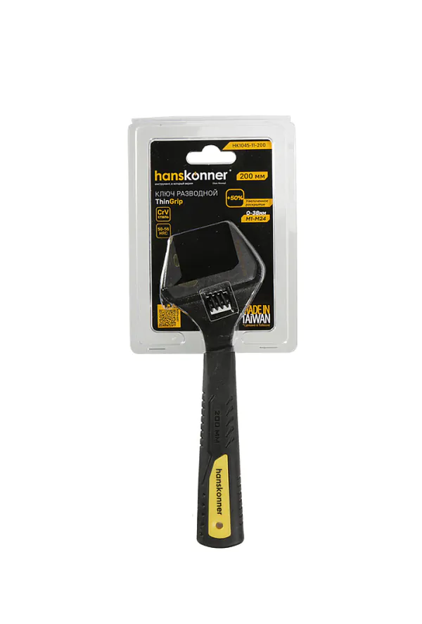 Ключ разводной Hanskonner 200 мм, УСИЛЕННЫЕ ТОНКИЕ ГУБКИ, обрезиненная рукоятка, HK1045-11-200